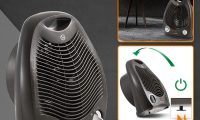 - posee 2 niveles de calor con 1000 y 2000 vatios, así como 1 posición de ventilación. Y es que, gracias a la función de ventilador integrada, el aparato también ofrece refrigeración para los calurosos meses de verano.