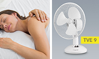 ¡Ya iba siendo hora! A partir de ahora, nuestro nuevo ventilador de mesa TVE 9 es el encargado de expulsar el sofocante aire caliente y de mantener una temperatura constante y agradable. Además, es tan silencioso que no supondrá una molestia mientras duerme por la noche o durante la siesta a media tarde. Y a un precio tan económico que no tendrá que plantearse si ponerlo en un lugar o en otro.
