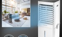En casa, en la oficina, en la cafetería… dentro de unas semanas estaremos sentados en salas abarrotadas y caldeadas, o mejor dicho, sudando. Así que sería inteligente tomar precauciones ahora para poder enfriar el calor que se avecina «justo a tiempo». Aún más inteligente es la solución de refrigeración a juego en forma de nuestros dos refrigeradores de aire idénticos de nuevo diseño PAE 60 en elegante negro mate sedoso o el PAE 61 en blanco mate de elegancia clásica: los potentes dispositivos 4 en 1 enfrían, refrescan, limpian y humidifican el aire. Sin embargo, lo más inteligente de todo es su ahorro de espacio: los refrigeradores de aire pueden reducirse de 98 cm a unos compactos 70,5 cm de manera que resulten fáciles de guardar en el armario.