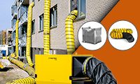 Es habitual que los calefactores de gasóleo con una potencia superior a 100 kW, debido a su tamaño, se coloquen en el exterior delante del edificio al que se desea proporcional calefacción- Ya sea para la ventilación, calefacción, secado, climatización o aspiración, cada unidad es tan eficiente cono el eslabón más débil de la cadena de los componentes usados. Es por eso por lo que incluso al elegir los accesorios como, por ejemplo, los sistemas de circulación de aire y los depósitos de almacenamiento, no debe conformarse, sino también a este respecto confiar en la calidad de la marca Trotec probada en múltiples ocasiones.