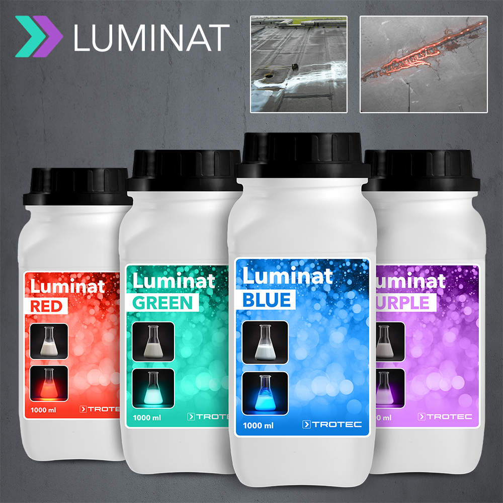 Le colorant Luminat de Trotec est une dispersion aqueuse qui peut être diluée avec de l’eau, mais ne se métabolise pas et ne laisse pratiquement pas de traces dans le spectre des longueurs d’onde visibles.