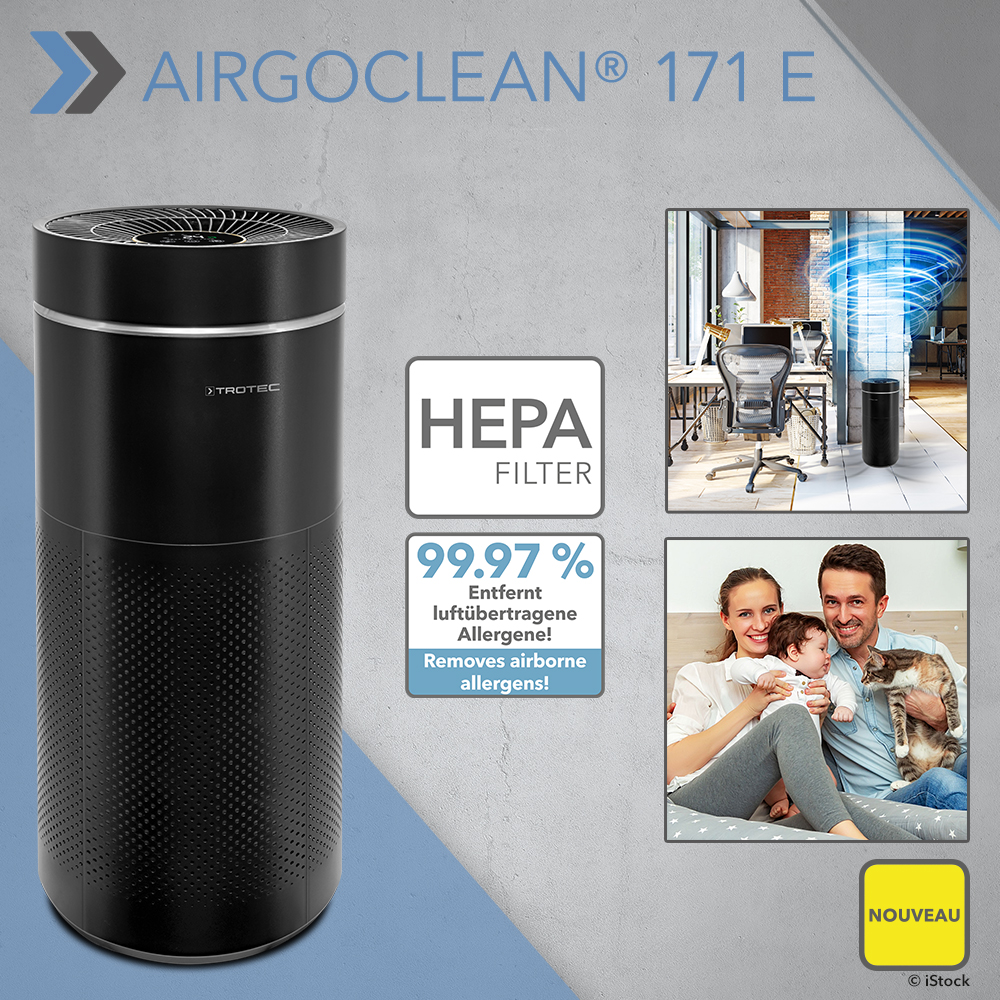En quoi consiste une vie saine ? Les réponses des experts de la santé sont unanimes : une alimentation équilibrée, un exercice suffisant, un sommeil réparateur et, bien sûr, de l’air pur à respirer. Néanmoins, l’air des espaces intérieurs est rarement propre ! Les virus et bactéries, les particules fines et domestiques, le pollen, les spores allergènes et les acariens nous mènent la vie dure. Plus nous en respirons, plus les effets sur notre bien-être sont perceptibles. C’est pourquoi le nouveau AirgoClean® 110 E design est recommandé : avec son puissant purificateur d’air HEPA triple action, il élimine 99,97 % des substances nocives en suspension.