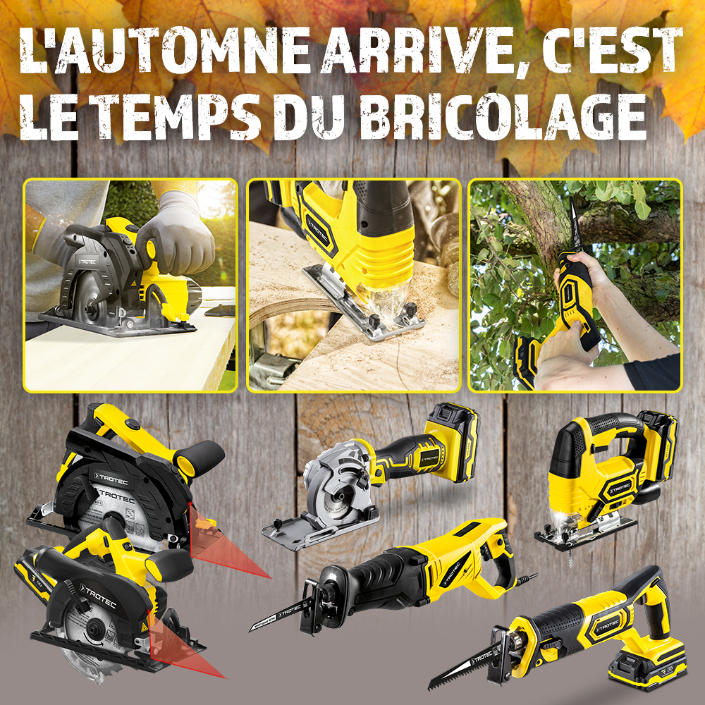 L’heure est au bricolage pour toutes et tous. En effet, l’automne est la saison idéale pour réparer, améliorer ou embellir tout un tas de choses dans la maison et le jardin. Et le meilleur dans tout ça, c’est que vous pouvez directement commencer votre projet car presque tous les outils électriques dont vous avez besoin se trouvent chez Trotec, en qualité professionnelle. Qu’il s’agisse de visseuses ou de perceuses sans fil, ou encore de ponceuses. Ou par exemple comme aujourd’hui de scies sauteuses, scies sabres et scies circulaires manuelles aux prix extrêmement bas.