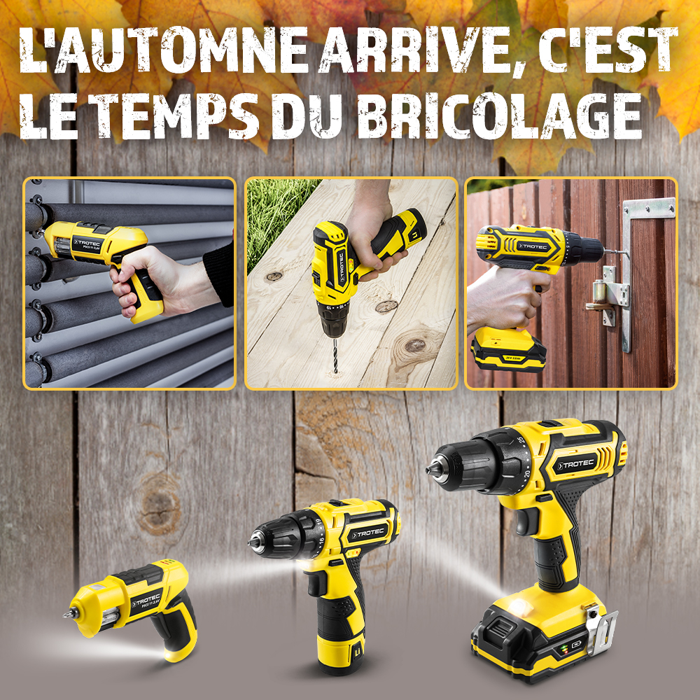 Enfin l’automne ! Enfin le retour du bricolage à la maison ! Avec les visseuses et perceuses sans fil à bon prix et de qualité de marque Trotec