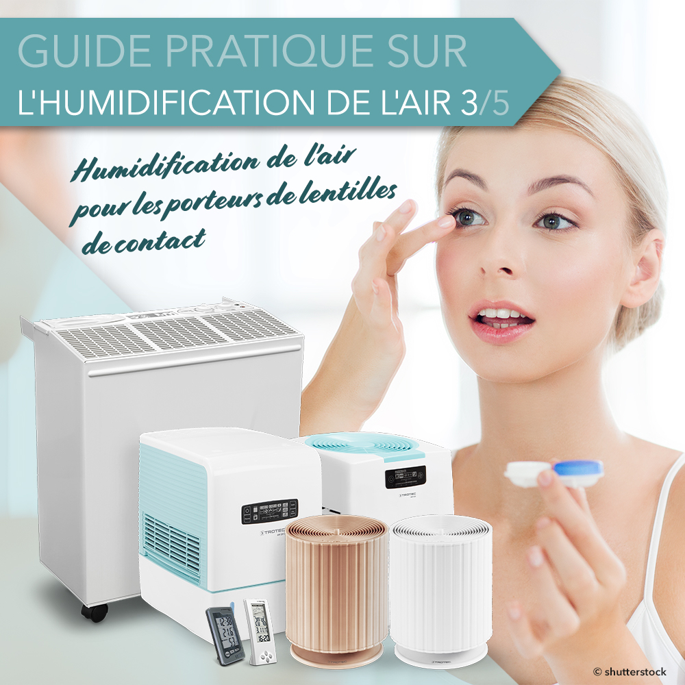 Souvent, les porteurs de lentilles de contact doivent batailler au bureau contre des irritations des yeux. En effet, la lentille de contact ne flotte pas comme habituellement sur le film lacrymal, mais repose directement sur la cornée, ce qui provoque rapidement une irritation de l’œil. La raison à cela est relativement simple : pendant le travail sur écran, nous clignons moins souvent des yeux, ce qui inhibe l’hydratation, puis l’air sec du bureau déchire le film lacrymal. Il existe deux solutions à ce problème : tout d’abord, le clignement conscient, et l’utilisation des humidificateurs d’air de qualité professionnelle de Trotec.