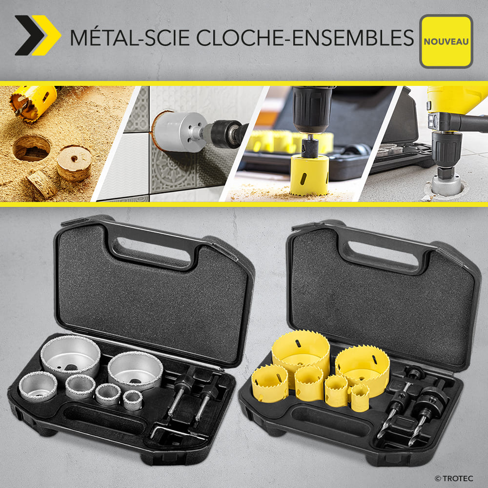 Qu’il s’agisse de mettre en place un boîtier encastrable pour prise de courant dans une cloison sèche relativement souple ou une robinetterie dans le plan de travail de la nouvelle cuisine : les deux nouveaux kits de scie-cloches de qualité en bi-métal HSS et carbure de Trotec vous aident à traverser tous les obstacles. Il suffit de les insérer dans le mandrin de n’importe quelle perceuse conventionnelle et de commencer le travail. Chaque kit contient les diamètres les plus courants utilisés pour les travaux de rénovation et de transformation sur le chantier ainsi que pour la fabrication de meubles ou l’aménagement intérieur.