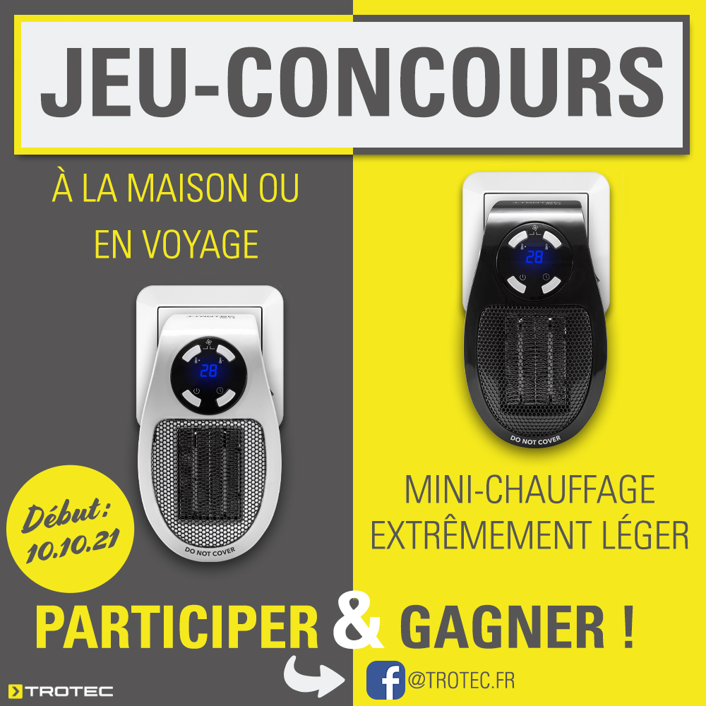 Notre jeu-concours démarre dimanche 10 octobre 2021. Nous mettons en jeu sur notre page Facebook un mini-chauffage pour prise murale !