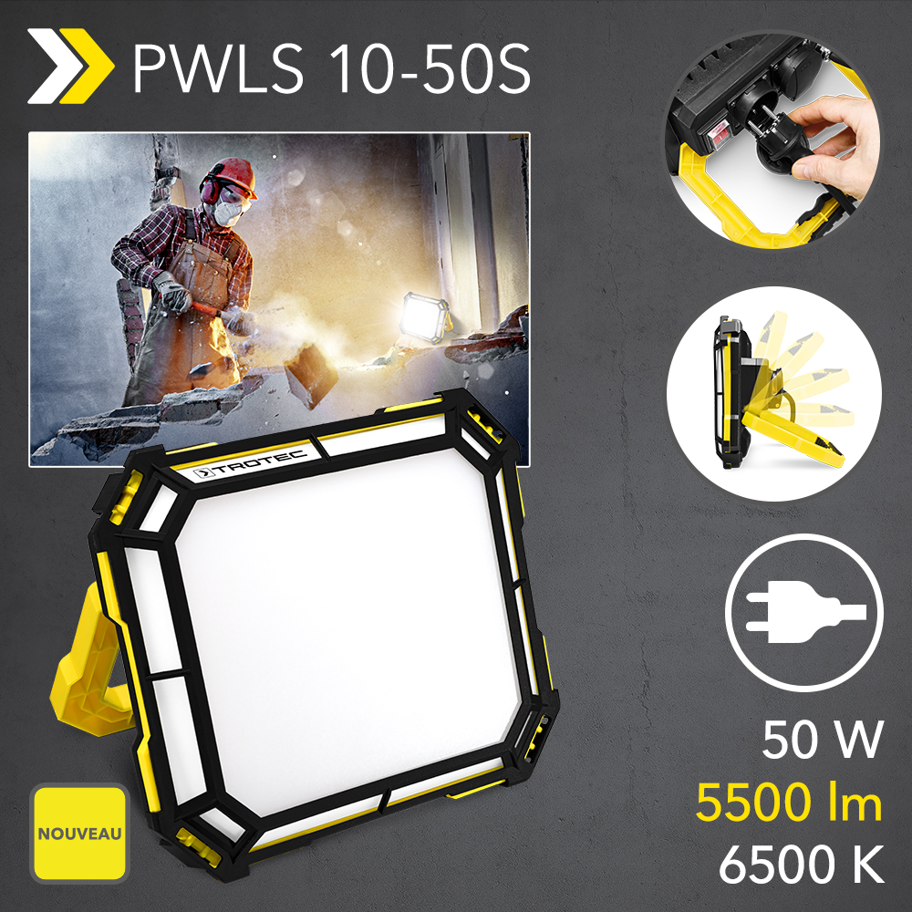 Plus de lumière ! Il ne faut pas le dire deux fois au projecteur de chantier LED PWLS 10-50S : Grâce à son flux lumineux sur deux niveaux avec jusqu’à 5 500 lumens au choix, le projecteur de chantier très plat et équipé de 84 LED puissantes assure un éclairage excellent et sans éblouissement de la zone de travail. Un rayon de lumière bienvenu pour tous les bricoleurs et artisans, que ce soit pour des travaux de rénovations en intérieur, dans un garage automobile ou sur un chantier en extérieur. Et ce n’est pas tout : deux prises de courant de 16 A intégrées à contact de protection et munies de couvercles rabattables, vous facilitent l’alimentation d’autres appareils électriques.