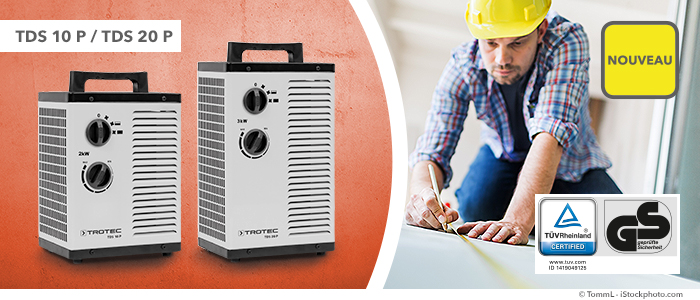 L’automne pointe le bout de son nez ; à pic pour l’arrivée des nouveaux chauffages de la série TDS-C. Chauffages d’appoint destinés aux métiers de l’artisanat et du bâtiment, ils présentent toutes les caractéristiques que l’on attend de radiateurs électriques modernes destinés à une utilisation quotidienne sur les sites de montage ou les chantiers. Notre gage de qualité réside dans la renommée de notre marque : du développement à la fabrication en passant par la conception, ces nouveaux chauffages sont signés 100 % Trotec, y compris les éléments chauffants modernes en céramique PTC.