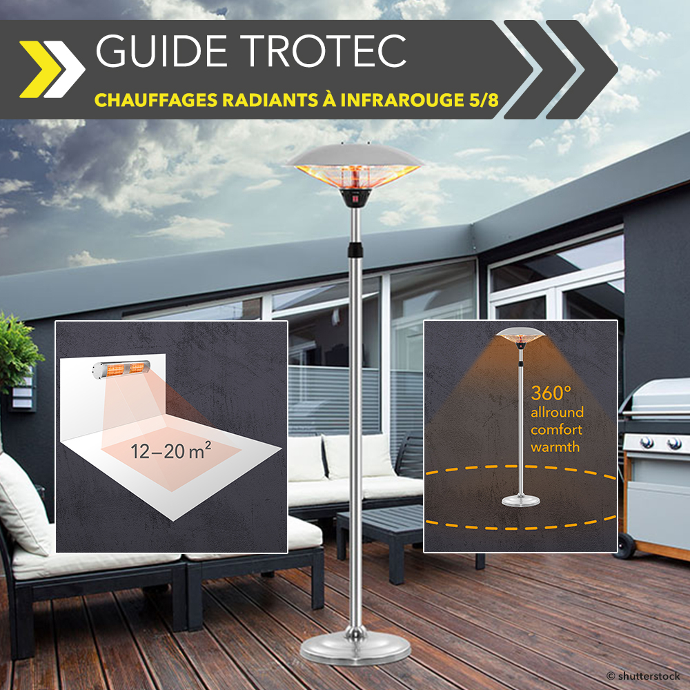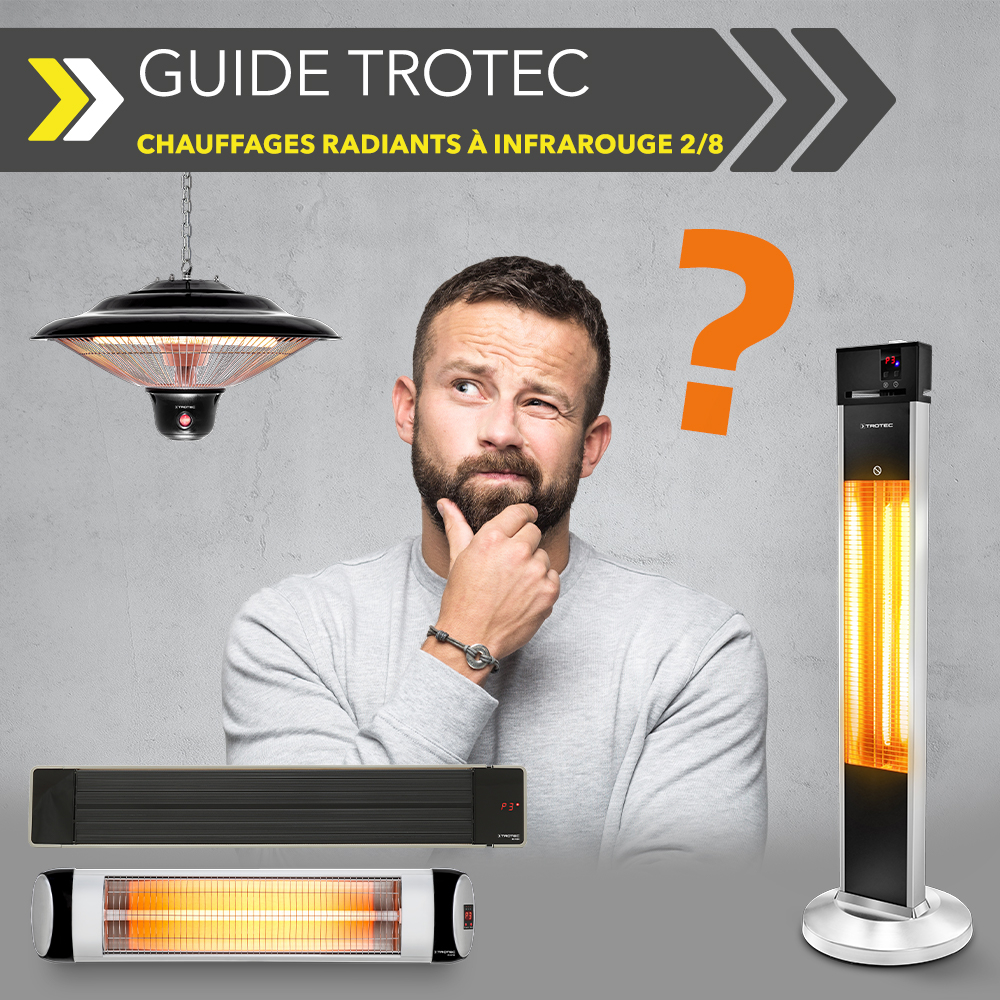 Les personnes qui souhaitent décider elles-mêmes quand il est temps de quitter leur terrasse sans laisser le dernier mot à la fraicheur de la soirée sont au bon endroit sur ce blog. En effet, aujourd’hui nous nous intéressons aux puissants chauffages radiants Trotec, ou plutôt aux quatre catégories dans lesquelles nous les avons répartis. Vous aurez ainsi un aperçu rapide et pratique de notre gamme – et vous pourrez vous informez ensuite de manière ciblée sur tous les avantages des différentes séries et des appareils disponibles dans la boutique en ligne de Trotec.
