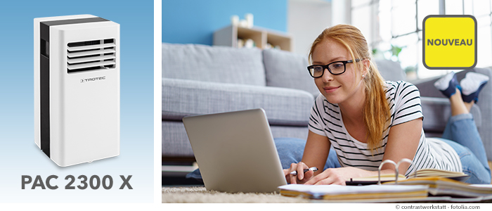 Avant que la chaleur ne vienne de nouveau frapper à votre fenêtre ou ne rentre sans invitation, regardez donc d’un peu plus près notre nouvelle solution polyvalente PAC 2300 X désormais à nouveau disponible. Afin de vous aider à prendre votre décision, nous vous présentons ses fonctions principales en détail, la raison pour laquelle elle est considérée comme « le petit génie » des climatiseurs mobiles ou ce qu’apportent les fonctions supplémentaires de déshumidification et de ventilation. Nous avons également énuméré d’autres avantages en termes d’équipement pratique.