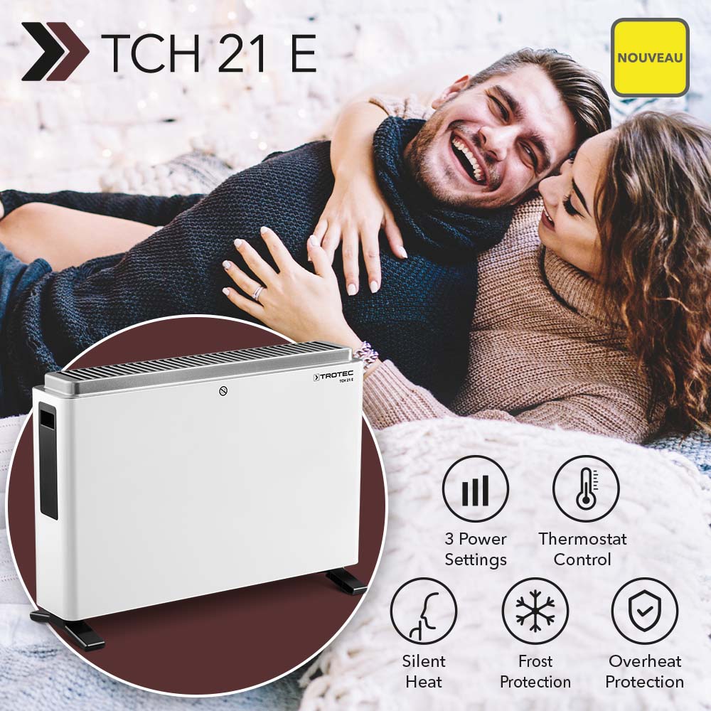 Entre la pandémie, l’inflation en passant par la hausse vertigineuse des coûts de chauffage pour le gaz et le pétrole : le monde extérieur est en plein chaos ! Une paix chaleureuse devrait au moins régner dans votre intérieur – le convecteur mobile TCH 21 E, enfin disponible, y contribue volontiers : avec une chaleur de convection qui remplit la pièce, un design moderne et attrayant et une utilisation simple. De plus, le chauffage plat garantit des coûts de consommation réduits grâce à sa commande par thermostat intégrée. Grâce à elle, vous réglez la température ambiante de manière entièrement automatique, en fonction de vos préférences personnelles. Bienvenue à la maison !