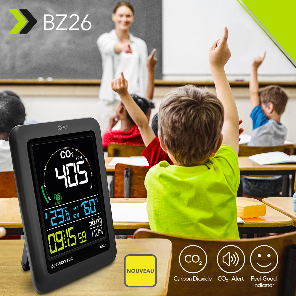 À peine l’hiver et son froid glacial arrivés chez nous que les discussions se lancent au bureau, à l’atelier, dans les salles de classe et les crèches. Comme une haute densité de personnes dans une pièce entraine aussi une haute concentration de dioxyde de carbone (CO2) dans l’air ambiant, une question se pose chaque année à l’arrivée de la saison froide : à quelle fréquence devrait-on, voire doit-on, ouvrir les fenêtres pour aérer ? Ces dernières années, c’est surtout le risque d’une infection au coronavirus qui a tranché ce débat autour des cycles d’ouverture. Et cette année, ce sont les prix élevés de l’énergie qui relancent de plus belle la dispute entre les partisans des « fenêtres ouvertes » et ceux des « fenêtres fermées ». Voici donc la proposition de Trotec pour rétablir la paix : Le moniteur de la qualité de l’air BZ26. Enfin disponible !