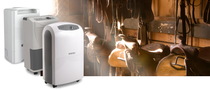 Les problèmes d’humidité touchent surtout les selleries non chauffées en hiver car les températures hivernales ralentissent le phénomène d’évaporation. Humide en permanence, le cuir des selles se couvre alors de moisissures blanches. En capturant l’humidité de l’air, les déshumidificateurs favorisent l’évaporation. Ils protègent ainsi les harnais et les selles et permettent en outre à tout l’équipement (bandes, guêtres, couvertures et tapis) de sécher correctement entre deux sorties.