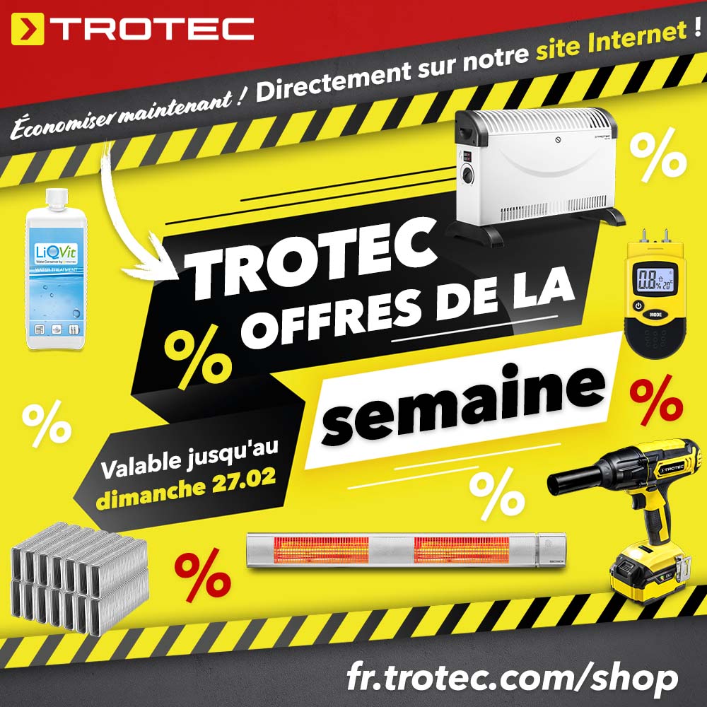 Connaissez-vous la marque TROTEC ? Qui dit TROTEC, dit d’abord traitement de l’humidité. Née d’une entreprise de sauvetage après sinistre, il était tout naturel que TROTEC propose déshumidificateurs d’air et humidimètres. Au-delà de ces produits phares, la marque allemande offre une vaste gamme allant des chauffages électriques professionnels aux caméras thermiques en passant par les tentes de chantier.