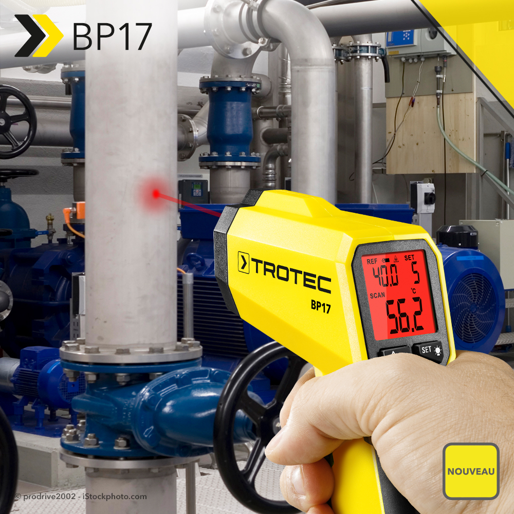 NOUVEAU Pyromètre BP17 – Dès maintenant en design exclusif Trotec avec des niveaux de sensibilité de 1 °C, 3 °C et 5 °C !