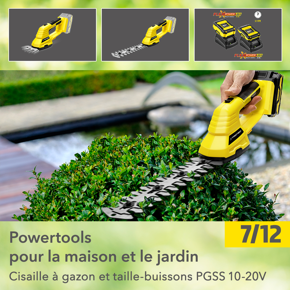 L’entretien du jardin peut s’avérer parfois bien fastidieux, ou devenir une partie de plaisir dans le cas où l’outil approprié est utilisé. Cet outil peut être par exemple le taille-herbe et sculpte-haie sans fil PGSS 10‑20V : agréablement léger, il dispose d’un insert de taille-herbe et sculpte-haie interchangeable avec système d’encliquage. Dorénavant, avec un seul appareil, vous pouvez réaliser la quasi-totalité des travaux de coupe, de taille décorative et d’entretien dans votre terrain et votre jardin – le changement d’outil permanent appartient ainsi au passé. Alors, n’hésitez pas à découvrir le vrai plaisir du jardinage !