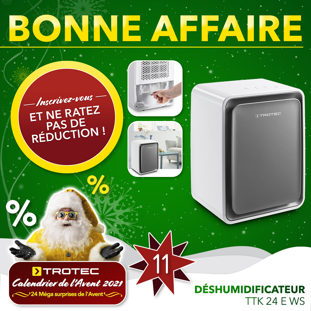 Aujourd’hui, notre calendrier de l’Avent donnait la chance d’acquérir le déshumidificateur d’air blanc et gris TTK 24 E WS.