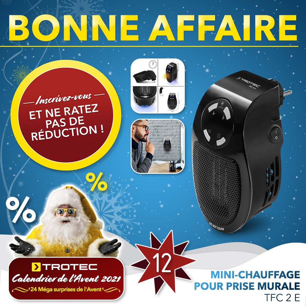 Aujourd’hui, notre Méga surprise de l’Avent était notre mini-chauffage pour prise murale TFC 2 E.