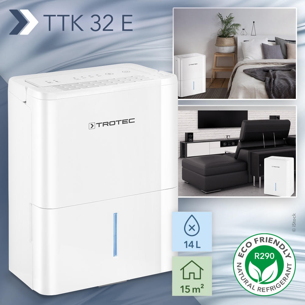 Lorsque la météo se refroidit, nous nous réjouissons toujours plus de retrouver notre intérieur bien chauffé. Cependant, la bonne température n’est pas le seul critère fondamental pour un climat de bien-être sain, mais aussi un taux d’humidité de l’air optimal. Celui-ci ne doit pas dépasser le seuil de 60 % qui entraine un risque de formation de moisissures dangereuses pour la santé. Ce danger peut être évité par l’utilisation de notre solution de déshumidification professionnelle et fiable pour votre maison et votre bureau : le déshumidificateur confort TTK 71 E enfin à nouveau disponible.