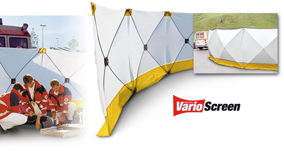VarioScreen est un type d’équipement idéal pour les secouristes et les sapeurs-pompiers car il permet de protéger les accidentés et les professionnels des regards indiscrets et de réaliser les premiers secours sans perdre de temps ni en étant dérangé par des facteurs extérieurs. Cette année, TROTEC a présenté le système VarioScreen au salon professionnel Florian des secours d’urgence de Sinsheim en Allemagne.