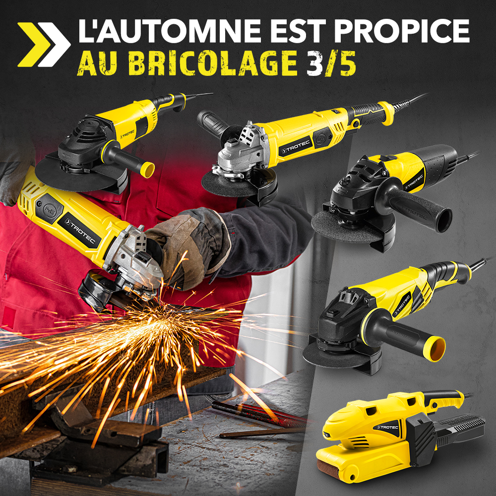 Martelage, sciage, perçage. Il est temps de préparer la touche finale. Avec de belles surfaces lisses et pour les obtenir, une ponceuse s’avère être indispensable : justement, Trotec en propose dans une qualité de marque professionnelle à un prix abordable pour les bricoleurs. Nos ponceuses à bande de la série PBSS par exemple sont des outils optimaux pour le ponçage rapide de grandes surfaces de structure grossière. La ponceuse excentrique sans fil PESS 10-20V est recommandée pour un ponçage parfait de finition de grandes surfaces sans câble. Vous pouvez également choisir une ponceuse polyvalente de notre série PMSS de ponceuses multifonctions 3 en 1.
