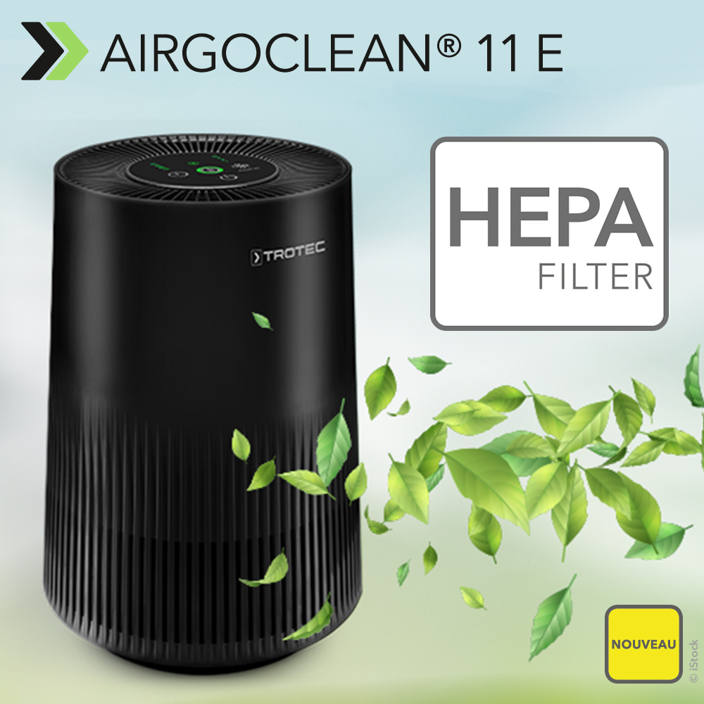 NOUVEAU Purificateur d’air design AirgoClean® 11 E avec filtre HEPA : élimine jusqu’à 99,97 % des virus, bactéries, poussières fines et allergènes dans l’air ambiant – enfin disponible