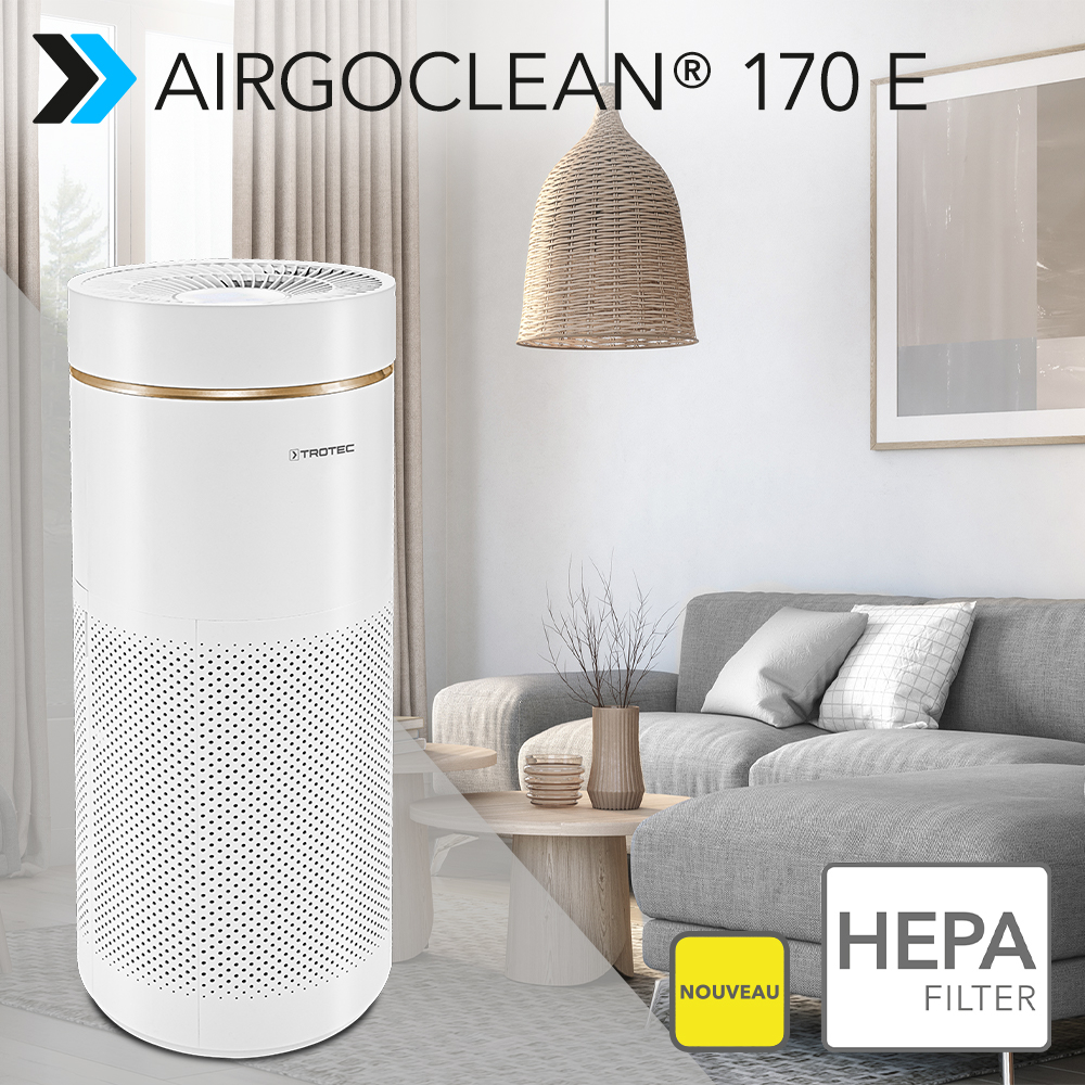 Nous sommes contraints actuellement de passer la majeure partie de notre temps à la maison. Cependant, même chez nous, il n’est pas évident de respirer un air toujours propre. D’une part les allergènes et les substances nocives, bactéries et virus, et d’autre part les particules fines et les acariens polluent l’air dans les pièces. Protégez-vous et protégez vos proches avec le purificateur d’air design AirgoClean® 170 E enfin disponible et son air pur filtré par un filtre HEPA, dénué à 99,7 % de particules en suspension pathogènes. Avec en plus une protection à 360° entièrement automatique grâce à des capteurs ultra-modernes de qualité de l’air.