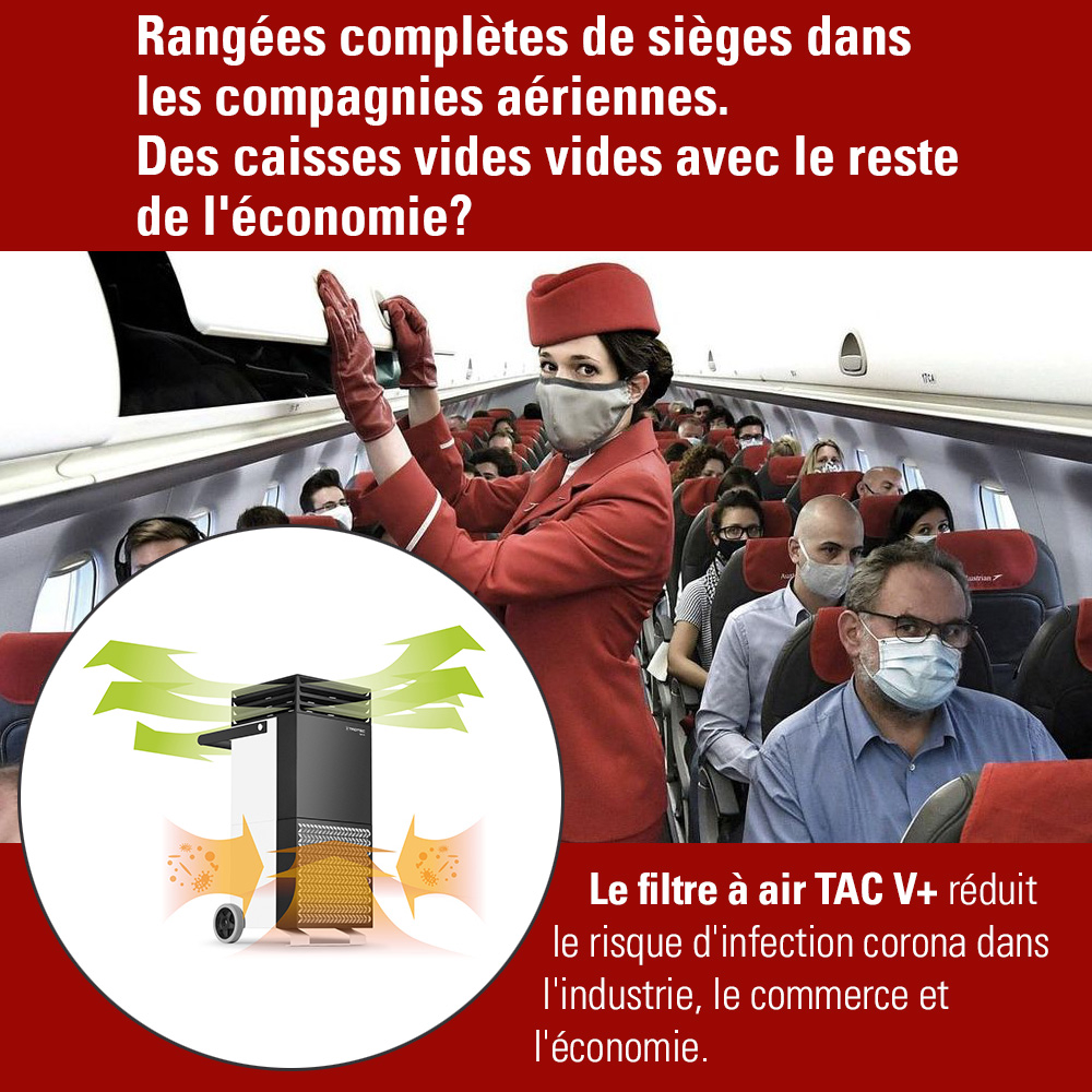 Le purificateur d’air TAC V+ diminue le risque d’infection au coronavirus dans l’industrie, le commerce et l’économie. Pour un retour à la normalité en toute sécurité.