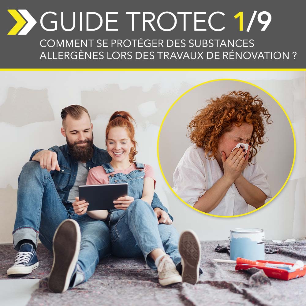 Si vous envisagez une rénovation de petite ou grande ampleur, nous vous accompagnons en tant que partenaire solide. Nous vous assistons volontiers dans chacun de vos projets en vous prodiguant de nombreux conseils utiles et notre savoir-faire, surtout avec notre outillage dans une qualité de marque, les PowerTools Trotec optimisés pour la pratique. Pour commencer, nous voudrions d’ores et déjà attirer votre attention sur le risque sous-estimé des substances allergènes qui peuvent se libérer lors des travaux de rénovation. Nos conseils vous aideront à vous protéger de conséquences indésirables – pour réussir dans votre rénovation, dès le début.