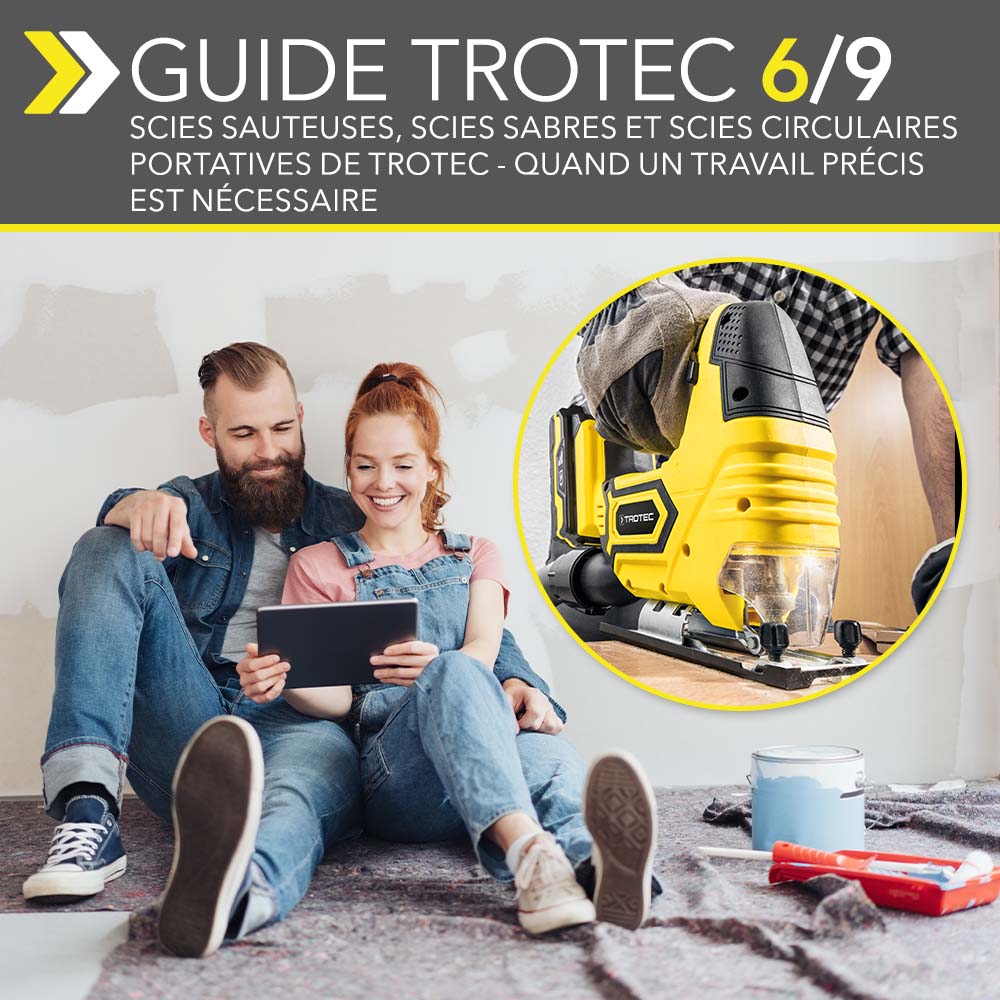 Lors de rénovations, les travaux de sciage du bois et le sciage d’autres matériaux font partie des activités les plus fréquentes. Quiconque souhaite scier se facilite le travail avec des outils électriques. Et une fois de plus, vous vous facilitez nettement la tâche en misant systématiquement sur nos PowerTools dans ce domaine également. Faites également confiance à la qualité de la marque Trotec pour notre excellente gamme de scies sauteuses, scies sabres et scies circulaires, car elle est toujours synonyme d’appareils performants et très avantageux. Car ce qui est bon n’est pas nécessairement cher.