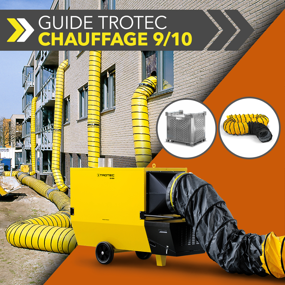 Souvent, les chauffages au fioul avec des puissances supérieures à 100 kW sont placés à l’extérieur devant le bâtiment à chauffer en raison de leur taille. Toutefois, qu’il s’agisse de ventilation, de chauffage, de séchage, de climatisation ou d’aspiration, chaque groupe est seulement aussi efficace que le maillon le plus faible dans la chaîne des composants utilisés. C’est pourquoi vous ne devez accepter aucun compromis lors de la sélection de vos accessoires, comme par exemple les systèmes de guidage d’air et les conteneurs d’entreposage mais ici aussi faire confiance à la qualité de marque solidement éprouvée de Trotec.