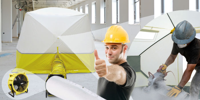 Lorsque les locaux offrent suffisamment d’espace, il est judicieux d’installer une tente pour y effectuer certains travaux salissants comme les travaux de coupe ou de ponçage en limitant la fuite de poussière vers l’extérieur.