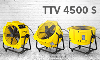 Le ventilateur-extracteur pro TTV 4500 S peut être désormais utilisé avec un berceau à positionnement variable. Ce berceau mobile sur roulettes permet de monter l’appareil à 0°, 45° ou 90° de façon à diriger le flux d’air dans la direction voulue.