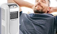 - est très mobile, grâce à ses dimensions compactes, son support de câbles intégrés et ses roulettes de transport pratiques. Vous pouvez ainsi facilement faire rouler le climatiseur d’une pièce à l’autre – par exemple le soir avant d’aller dormir, du salon à la chambre à coucher.