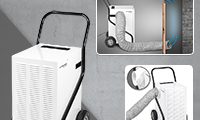 Grâce à son ventilateur spécifique, le déshumidificateur s’adapte également à la diffusion ponctuelle d’air sec ou au séchage de cavités. Pour cela, un tuyau d’air est simplement fixé sur l’embout d’adaptateur disponible en option. La fonction pratique de minuterie évite les durées de service inutiles et permet une déshumidification adaptée et individualisée ; à la suite d’une mise hors service inattendue due à une coupure de courant, la fonction utile de mémoire redémarre l’appareil avec les réglages pré sélectionnés et ce, dès que le courant est rétabli. La construction solide en acier sous forme de trolley avec un guidon, les poignées de transport et des grandes roues facilitent ainsi le transport, même dans des zones difficiles d’accès ou dans des escaliers.