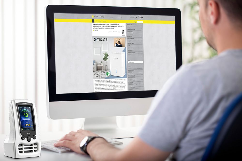 Une personne souhaitant savoir à quel point l’air ambiant est de bonne ou de mauvaise qualité dans l’entreprise, si l’air présente une concentration en CO2 ou une pollution en particules fines de poussière trop élevée, et si des mesures d’amélioration de la qualité de l’air sont nécessaires, trouvera tout ce dont elle a besoin dans la boutique en ligne Trotec.
