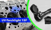En effet, la lampe UV Torchlight 15F émet une faible proportion de lumière blanche en plus de lumière ultraviolette. Cette lumière visible peut se révéler avantageuse, par exemple lors de la recherche de fuite dans des endroits obscurs ou mal éclairés. Cependant, elle entrave le travail des utilisateurs devant réaliser des inspections à une distance réduite de l’objet comme c’est le cas lors de la vérification de la présence de fissures. Le halo de lumière généré par la lumière blanche gêne dans ce cas car il réduit la visibilité du traceur. Pour éviter ce phénomène, un filtre peut être monté sur la lampe. Ce filtre permet de travailler exclusivement avec des ultraviolets de longueur d’onde de 365 nm.