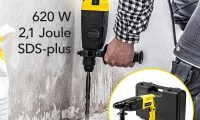 Le marteau perforateur-burineur PRDS 05‑230V est fourni avec un mandrin autoserrant, un burin plat SDS, 3 forets SDS, une butée de profondeur, une poignée supplémentaire pratique et une valise de transport.