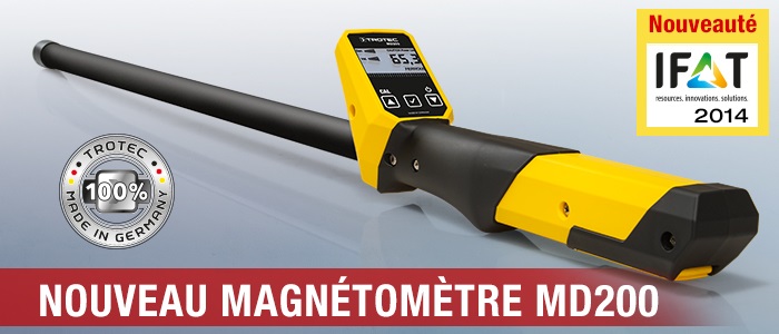Nouvel appareil de mesure Trotec : magnétomètre MD200 pour la localisation des objets en métaux ferromagnétiques enfouis sous la terre, l’asphalte, la neige ou l’eau jusqu’à 3 mètres de profondeur.