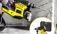 - Il est livré sous la forme d’un set complet comprenant un mandrin à couronne dentée avec porte-embout SDS plus, un burin pointu SDS 14 x 250 mm, un burin plat SDS 14 x 250 mm, trois forets SDS 8/10/12 x 150 mm, une clé de mandrin, une butée de profondeur en métal et un coffret de transport.