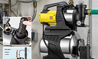 La tête de pompe et le réservoir sous pression sont en acier inoxydable de haute qualité. Le boîtier de la pompe en métal jaune est doté d’un revêtement de protection résistant aux intempéries. Afin de faciliter le transport du surpresseur domestique, ce dernier est entièrement entouré d’une protection solide en plastique noir avec une poignée de transport. Le moteur enrouleur en aluminium durable se distingue également par une excellente résistance à la corrosion, ainsi qu’une grande capacité de conduction thermique et solidité. La garniture mécanique en céramique de grande qualité garantit également une longue durée de vie, puisqu’elle empêche l’usure précoce de la pompe de refoulement. Grâce à un circuit de protection thermique, le surpresseur domestique est, en outre, protégé contre la surchauffe.