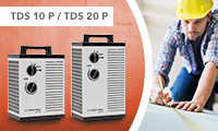 Pour accomplir leur tâche, les radiateurs soufflants de cette catégorie utilisent habituellement des ventilateurs axiaux, mais ceux de la série TDS-P sont équipés spécifiquement de soufflantes radiales à haute puissance. Celles-ci offrent un plus grand débit d’air avec une pression plus élevée et un niveau sonore plus faible par rapport aux constructions axiales. Afin de permettre un réglage individuel de la puissance de chauffage souhaitée, les deux modèles TDS disposent chacun d’un thermostat à réglage continu et de deux niveaux de chauffage séparés pour une puissance maximale de 2 kW dans le cas du TDS 10 P ou de 3 kW dans le cas du TDS 20 P.