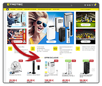 Tous les « TOP DEALS » sont affichés sur notre page d’accueil dans la boutique en ligne fr.trotec.com/shop. Naviguez simplement avec les flèches vers la « droite » et la « gauche » et vous trouverez toutes les offres en cours.