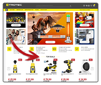 COMMENT TROUVER VOS OFFRES DANS LA BOUTIQUE EN LIGNE:Tous les « TOP DEALS » sont affichés sur notre page d’accueil dans la boutique en ligne fr.trotec.com/shop. Naviguez simplement avec les flèches vers la « droite » et la « gauche » et vous trouverez toutes les offres en cours. |
