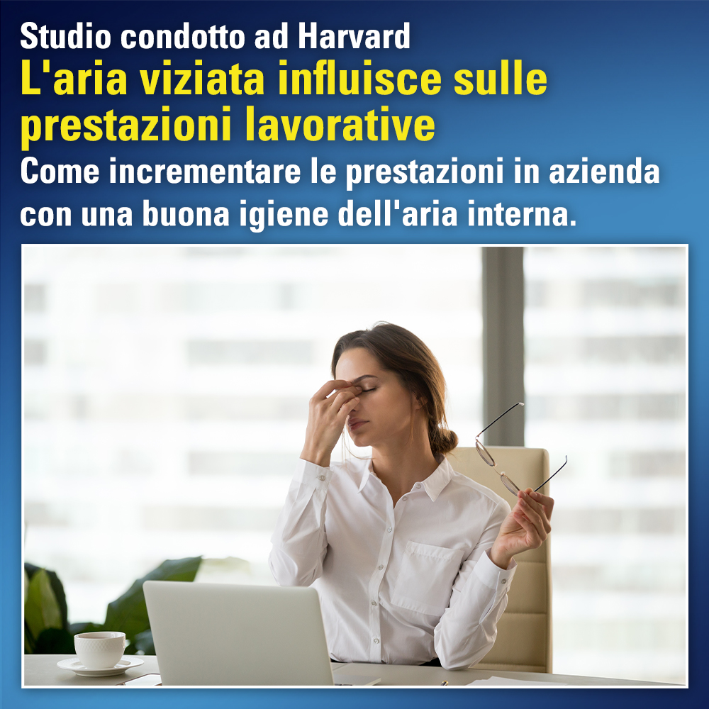 Quando il personale di un ufficio sopporta quotidianamente l’aria pesante sul posto di lavoro, le conseguenze sulle prestazioni lavorativi possono essere notevoli. Questo il risultato a cui sono giunti i ricercatori della rinomata università di Harvard che in uno studio americano hanno analizzato le conseguenze della qualità dell’aria interna sulle competenze cognitive del personale.