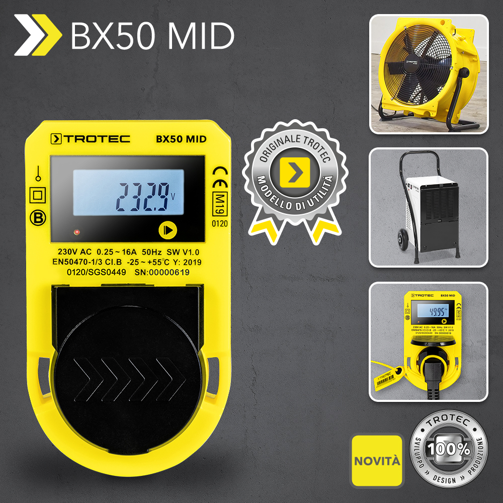 Ai fini della fatturazione, le aziende di ristrutturazione, come pure gli artigiani, devono rilevare la quantità di energia estratta presso il cliente in loco tramite ciabatte elettriche conformi alla direttiva MID*. Tuttavia, dove si utilizza una sola utenza elettrica, l’uso di ciabatte elettriche MID di grandi dimensioni è assolutamente inefficace. In questi casi si raccomanda invece di utilizzare quello che è probabilmente il misuratore di consumo energetico più compatto sul mercato: il nuovo BX50 MID, con la convenienza e la qualità imbattibili del marchio, che finalmente è disponibile per la consegna.