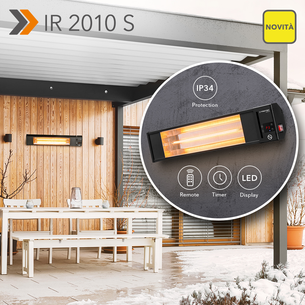 Anche l’ultima ondata della pandemia è per ora passata? In tutto il mondo si allentano le misure e si va verso la riapertura, e probabilmente anche da noi a breve. È quindi il momento giusto per preparare terrazze e balconi per accogliere i vostri ospiti il più possibile al caldo e per potervi così godere i vostri spazi all’aperto anche nei giorni più freddi e rigidi. E fortuna vuole che la nuova stufetta a raggi infrarossi di design IR 2010 sia finalmente disponibile. Questa vi garantirà per tutto l’anno 2.000 watt di calore estivo, ed è quindi ottima per pranzi o cene in famiglia sulla propria terrazza di casa o per creare una temperatura piacevole per i posti a sedere nelle attività di gastronomia all’aperto.