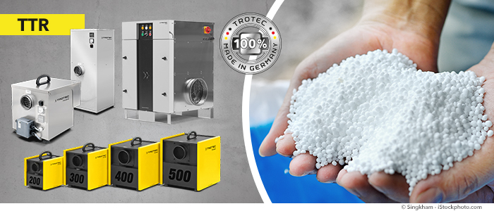 I manager addetti alla qualità e ai processi dell’industria alimentare, farmaceutica e chimica conoscono quanto sia difficile mantenere facilmente cospargibili le polveri e i granulati. Molti materiali sfusi amano infatti l’acqua. L’assorbono con avidità, e non la rilasciano più spontaneamente. Se un’elevata umidità penetra in un materiale sfuso altamente igroscopico in maniera incontrollata, la cospargibilità desiderata di questo prodotto normalmente si perde. Trotec offre però la giusta soluzione professionale.