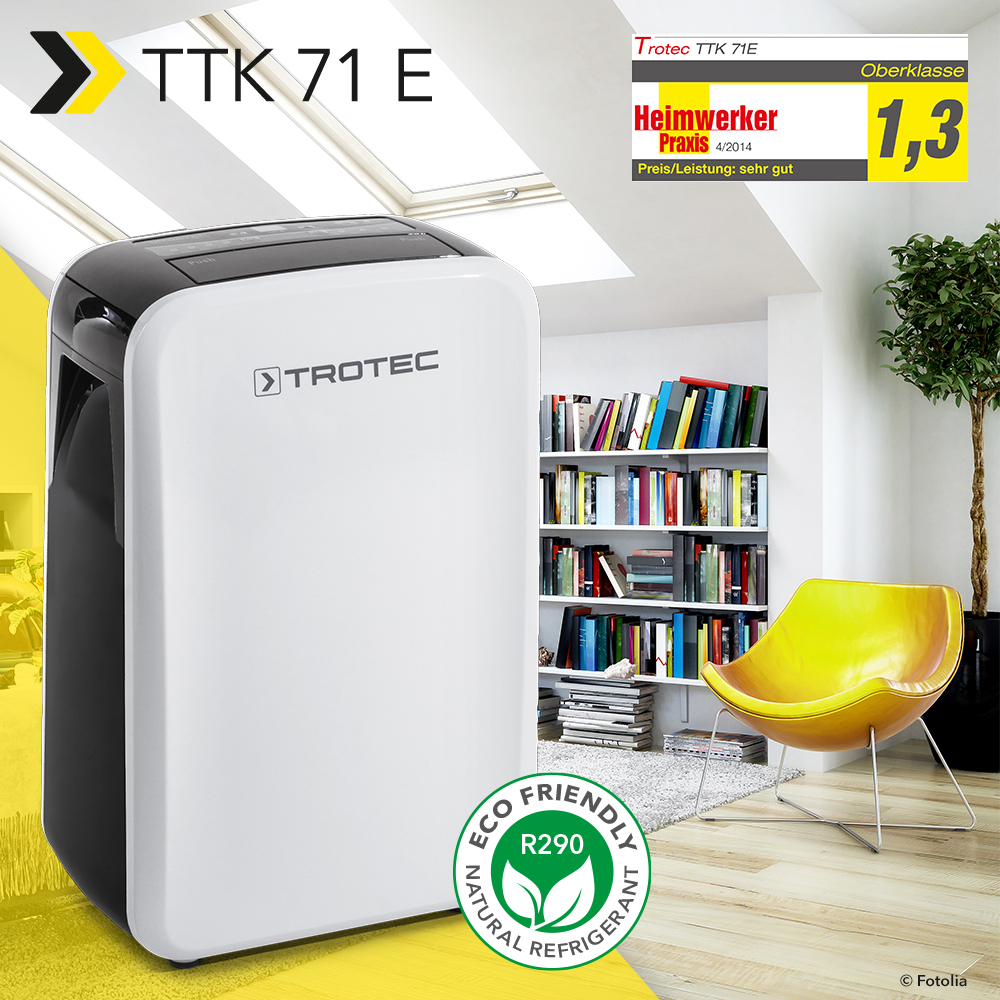 Quando fuori fa freddo tornare a casa tra le quattro mura domestiche ben riscaldate è sempre un piacere. Per un clima di benessere sano, però, non basta soltanto raggiungere la temperatura giusta, ma serve anche l’umidità ottimale, che non dovrebbe mai superare la soglia del 60% o si rischia di dare adito alla rapida formazione di muffe nocive per la salute. Per non correre questo rischio, avete a disposizione una soluzione di essiccazione per ambienti abitativi e di lavoro tanto professionale quanto affidabile: il deumidificatore comfort TTK 71 E, finalmente di nuovo disponibile.
